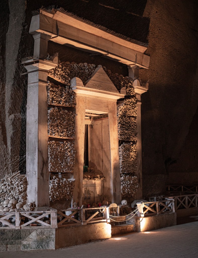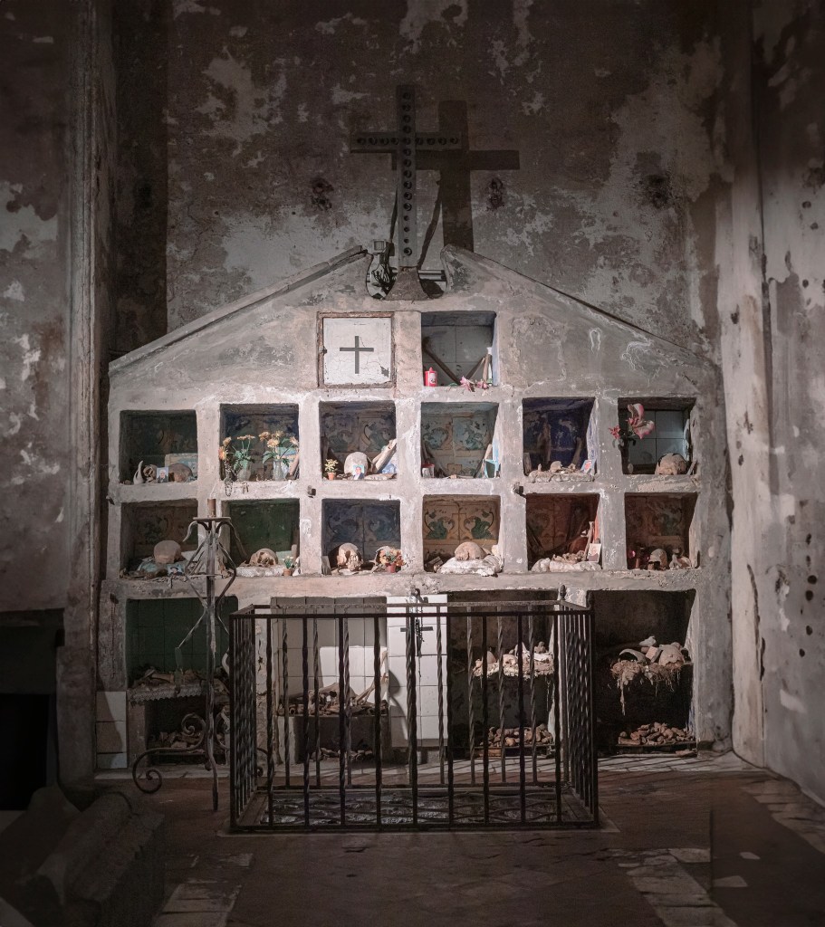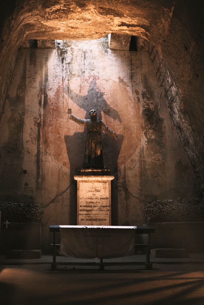 Tra affreschi paleocristiani e cripte silenziose, si respira un’atmosfera sospesa, dove la fede convive con l’ombra della morte.