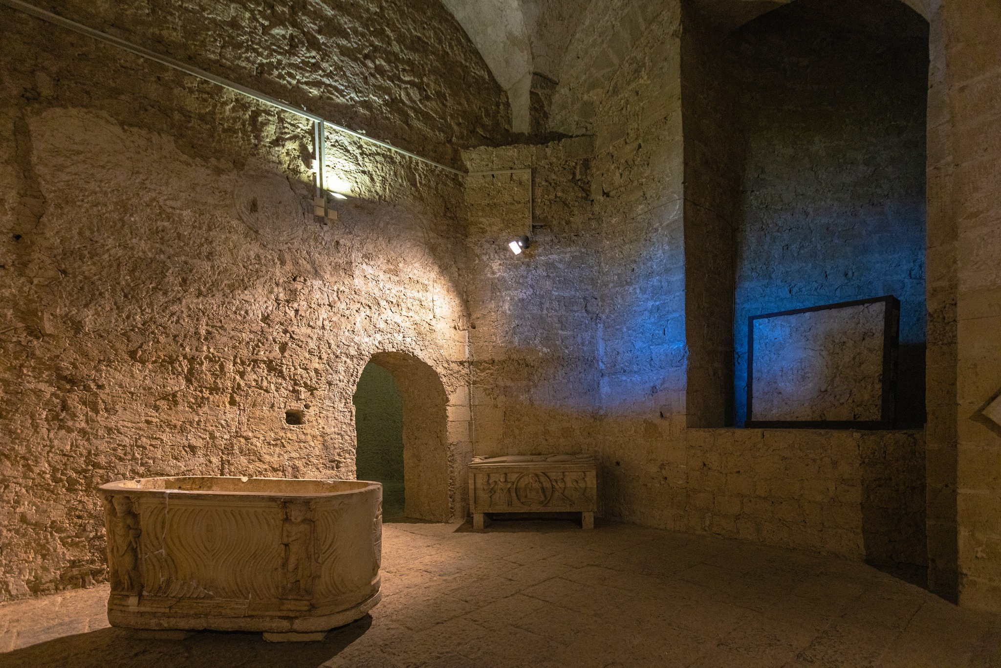 Oltre alla loro funzione strutturale, i sotterranei ospitano una preziosa collezione di circa 150 opere in marmo, tra sculture ed epigrafi che vanno dal XIII al XVIII secolo. Disposte lungo corridoi e sale ampie, queste opere raccontano storie di devozione, potere e arte, offrendo uno spaccato vivido della Napoli medievale e barocca.
